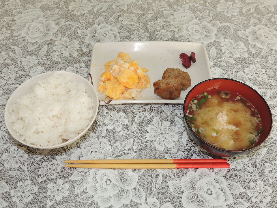 | 何回かトイレに行きながらも結局起きたのは7時過ぎだったから、 なんと約11時間も寝てたことになる。 ハラが減ったんで、早速朝メシ。 おかずが少ないのにはもう慣れたので、今回は「塩屋(まーすやー)」の塩ふりかけを持ってきている(笑)。 |