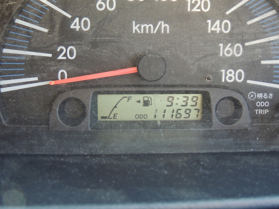 | さて、レンタカーを借りて、海に出発しようとしたら、 ありゃりゃ、ガソリンがエンプティーだ…。 |