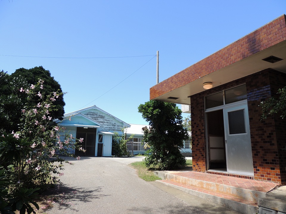 | 今回もお世話になる「二六荘」。 左の水色の建物が旧館で、右の煉瓦風タイルの建物が新館。 今回の俺の部屋は、新館に入ってすぐ右の1号室だよん。 |