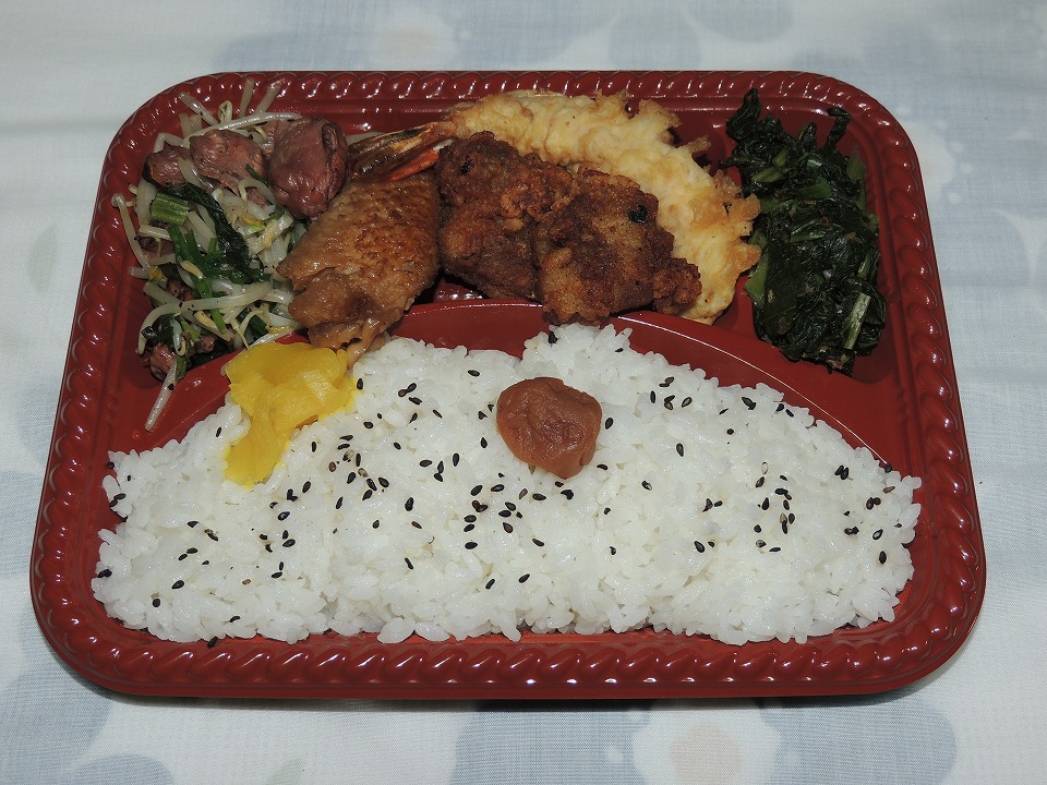 | 今日と明日の晩は、宿のスタッフもお祭りで忙しいので、晩メシはお休み。 今晩は、希望すればお弁当を頼めたが、明日はお弁当すらお休み…。 お弁当は夕方前にはもうできあがっていて、名前を書いた袋に入れて食堂に置いてあった。 この後、部屋で半分ほど早弁した(笑)。 左上の砂肝炒めの砂肝が、写真より下にたくさん埋もれていて、思わず笑みがぽろぽろとこぼれた。 お弁当のおかずは、花火の写真を撮りおわったらチンして、しまーのつまみにするのだ。 |