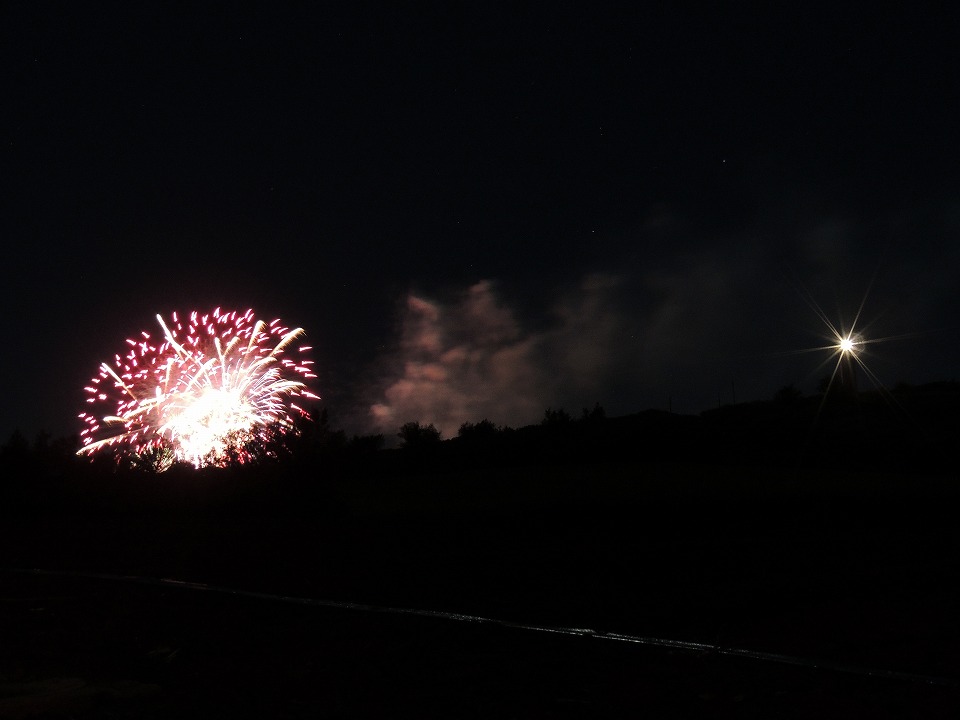 | 時間が随分押して、花火が始まった。 約4分間で約360発の花火が上がる。 灯台の明かりと一緒に撮影したかったので、 昼間に目星を付けていた場所までクルマで来た。 十数枚撮影したが、右の灯台の明かりが強いときと、 花火がいい感じの時が旨く重ならず、 まともな写真は僅か1~2枚にとどまった。 写真手前の光の線は、サトウキビ畑に水をまくホースが、花火の光に反射しているもの。 この写真を撮った後は、宿で、おべんとをチンして、それをつまみにして、呑みました。 ヘロヘロくんになりながらこのページをUPして、23時頃寝ます~。 |