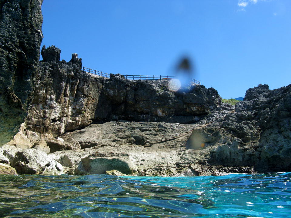 | いつもはこの岸壁の上から「潜りてぇ」と指をくわえていたのだが、 やっと潜れたぞぃ。 いつか、ちゃんとスキューバダイビングしてみたいね。 さて、宿に戻って器材を洗って干して、大東宮祭の御神輿を見に行こうっと。 |
