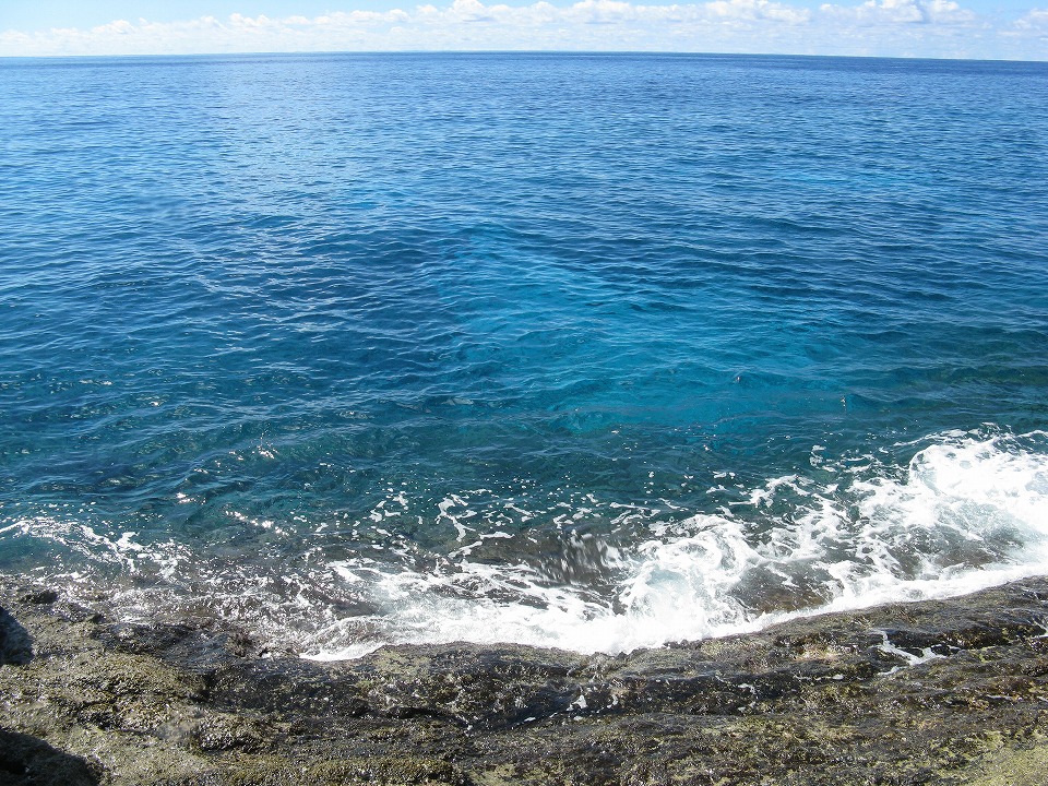 | 海に下りてきた。 いい色。 海況も穏やかだし、さあ、いよいよ北大東島の海に潜るぞぉ! |