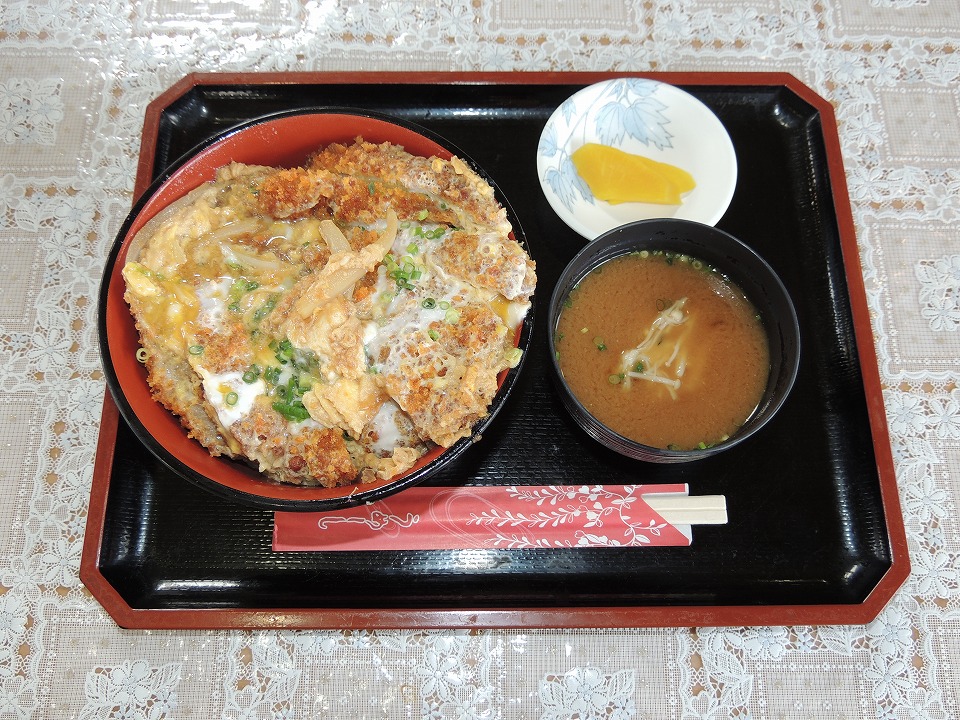 | 11:30の開店までちょっと待ち、開店と同時に入って カツ丼700円ナリを頼んだ。 量はそう大したことないだろうと侮っていたら、 とんでもない量が出てきた。 俺より前に出てきた、相撲チームの客へのソーキそば大盛りの量が半端なかったので、 ちょっと戦々恐々していたんだよね。 最初は半分残して晩メシ用に詰めて持って帰ろうと思っていたんだけど、 旨かったんで結局全部喰っちまった(笑)。 |