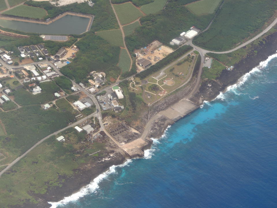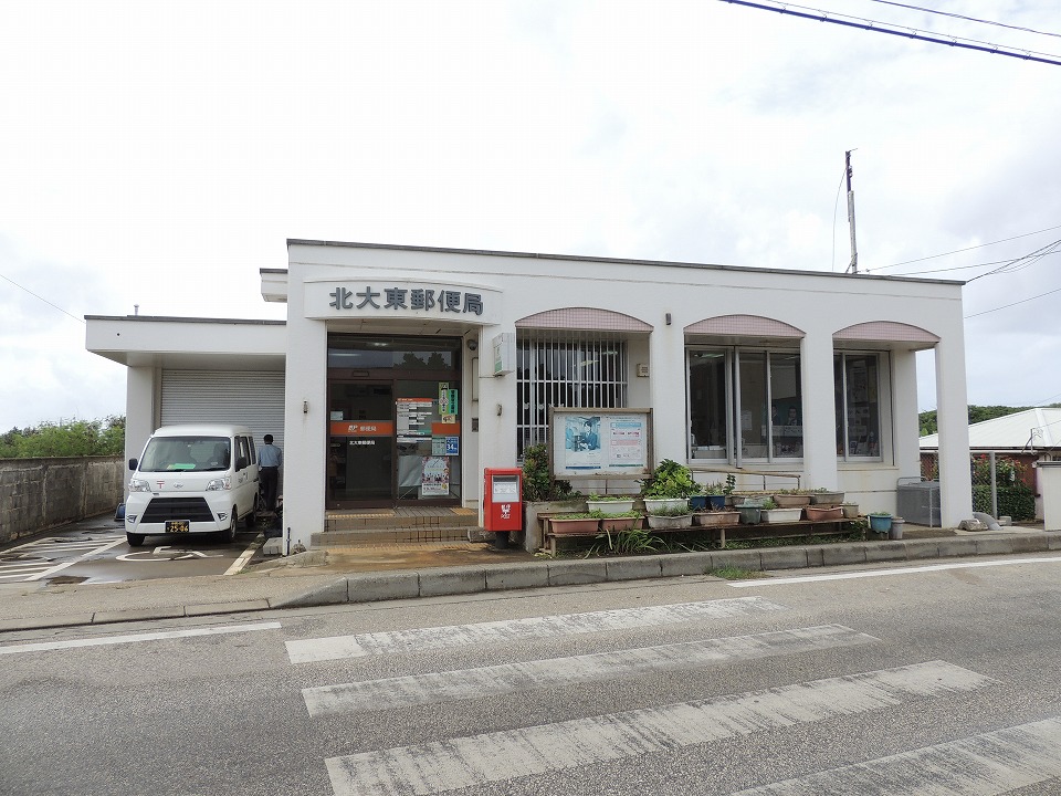 | チェックアウトの準備をしたら、 宿から歩いてすぐの北大東郵便局から器材を発送する。 局員さん立ち会いで器材の内容を確認してもらい、 飛行機に載せられることを確認した。よかった。 |