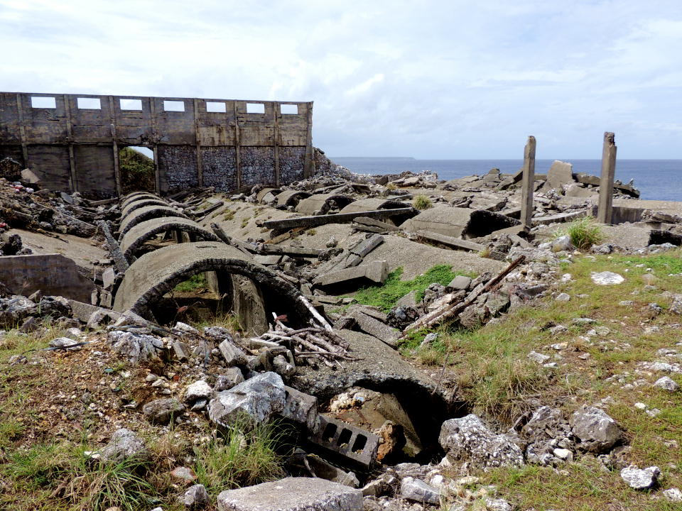 | 西港のすぐ近くにある、燐鉱席貯蔵庫跡。 ただこのままにしておくのはもったいないと思うが、 整備するにもカネがかかるだろうし…。 |