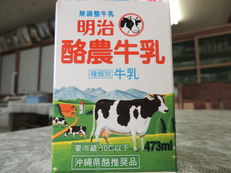 | せめてもの罪滅ぼしに牛乳も飲む。 パッと見は500mlだが、473mlになっていることを見逃してはいけない。 これは原料高騰により容量を減らした…ンではなく、 米軍統治時代からのガロン計算を引きずっているからなんだよね。 ちなみに、473mlは、1/8ガロン。 |