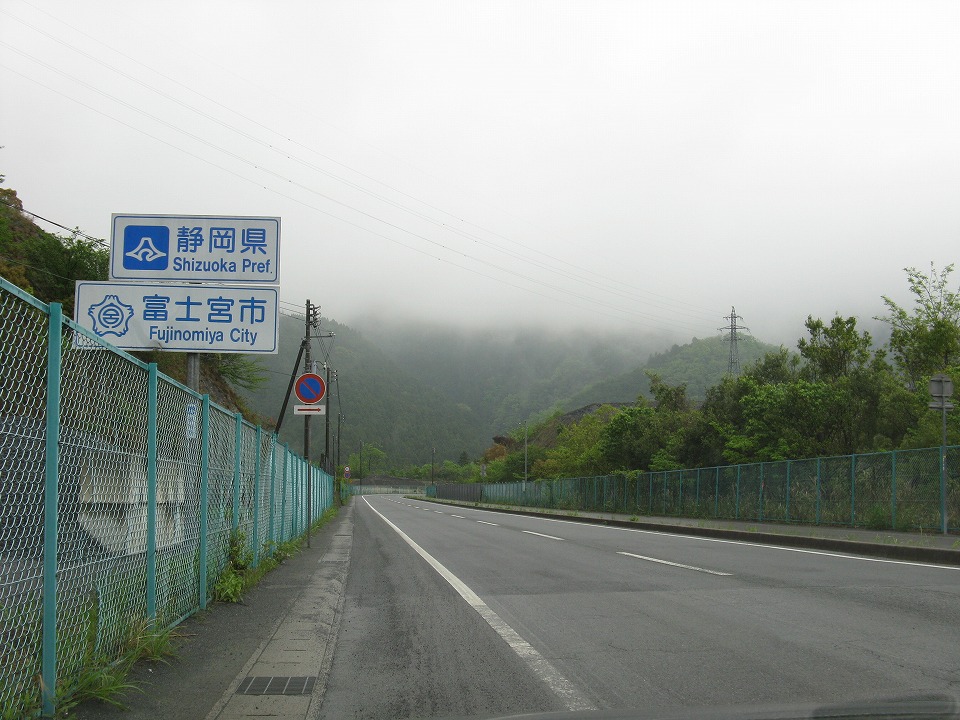 | 途中で国道52号の対岸の県道に移り、 早朝の身延駅を取材しつつ、さらに南下していたら、 静岡県境が登場した。 全く何でもないとこで県境なのね。 峠でも、川でもないよ。 |