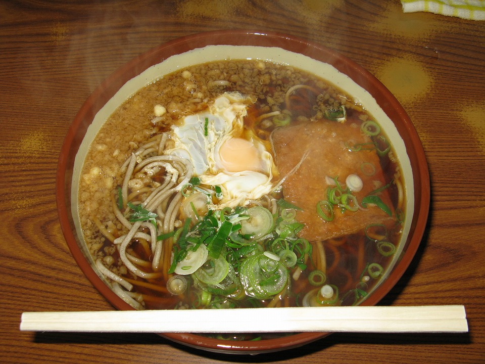| きつたまそば。 悔しいことに値段をチェックし損ねた。 値段のチェックより、繁盛ぶりがインパクトがあったんだよ。 客層や、注文品を観察していたら、 俺のがいくらだったか分かんなくなっちゃった(苦笑)。 ホントは店内の様子も撮影したかったんだけど、 一見なのでヤメといた。 |