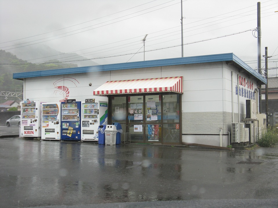 | さて、富士での取材を終え、清水に向かう。 雨が結構強くなってきた。 途中の由比でサクラエビをGETしたいが、 事前の情報では、不漁のため基本的に売っていないらしかった。 由比港漁協直売所にダメ元で寄ってみる。 |