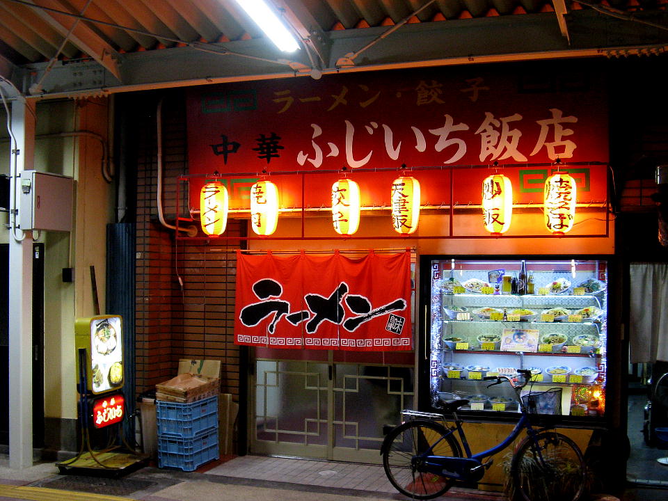 | 楽しくおもしろく呑んで、あっという間に3時間ほどが経った。 隣の席のベテラン女子チームの呑みが進んで、 嬌声をあげるようになってきたので退散することにした。 しかし、あの嬌声は耳をつんざくようで、俺は非常に苦手なのだが、 本人たちは何も感じないのかな。 さて、〆はやっぱラーメンでしょ。 店の前のサンプルや、チャリがいいね。 |