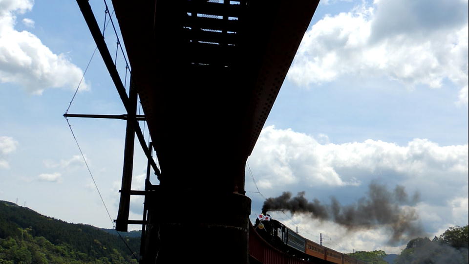 | 2本のSLの合間に走った16000系。 ちょっと大きいサイズでの、約18秒の動画はこちら。 |