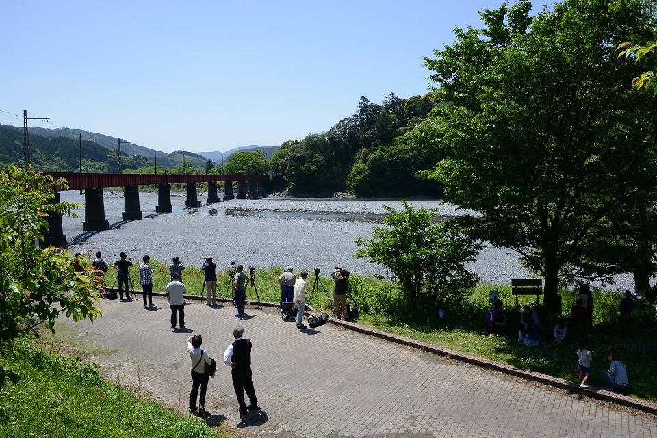 | 午後1本目の1004レは、家山川の河原で撮影。 川を横切って鯉のぼりが泳いでいた。 約40秒の動画はこちら。 |