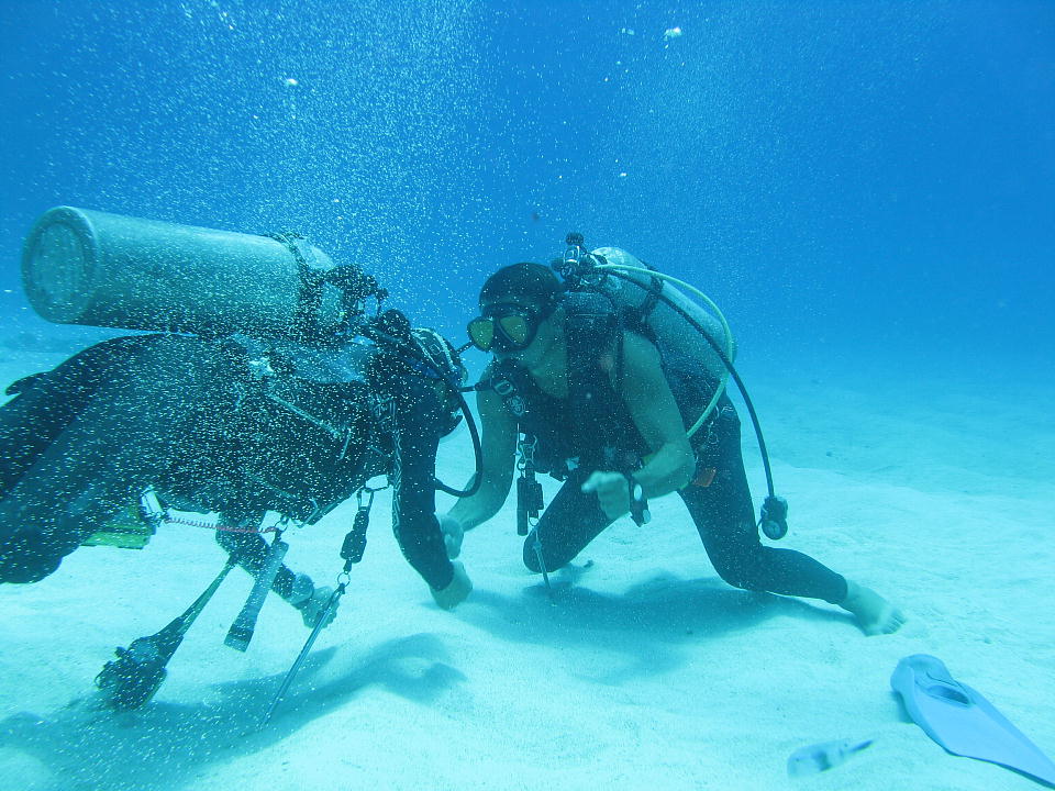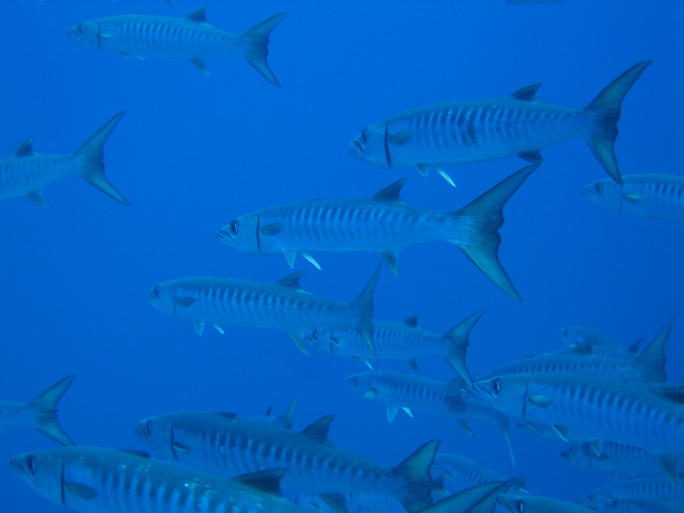 | 与那国島でのラストダイブは、 大物狙いの西崎(いりざき)。 なかなかいい流れの中、 ブラックフィンバラクーダの群れに行き会った。 1匹60cmぐらいってとこ。 流れが確認できる約17秒の動画はこちら。 穏やかな西崎ならのんびり流されながら潜っていられるが、 海流が「洗濯機」のようになるときもある。 2011/07/04の約1分23秒の動画はこちら。 ダイバーが吐くエアーが下に流れているのが確認できます(笑)。 |