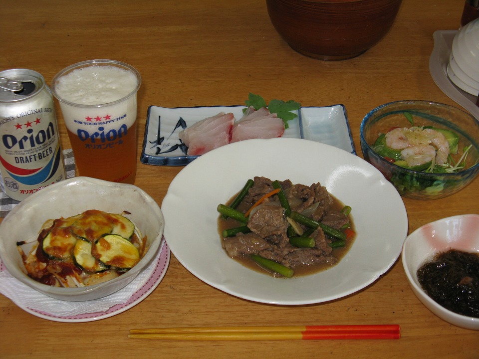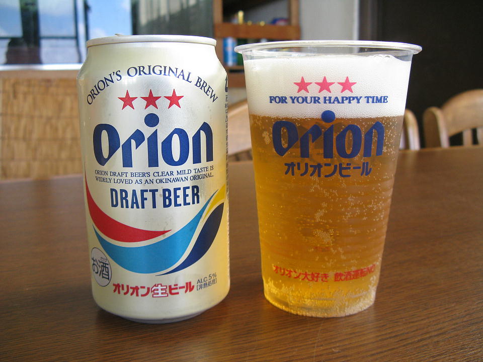 | 今日も楽しいダイビングでした。 オリオンを呑みながら、晩メシじゃ。 |