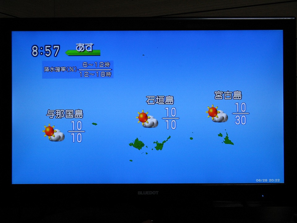 | ふへへへへ。 与那国2日目の29日(土)に梅雨が明けるかな。 もしそうなれば、やいまで梅雨明けを迎えるのは初めてとなる。 |