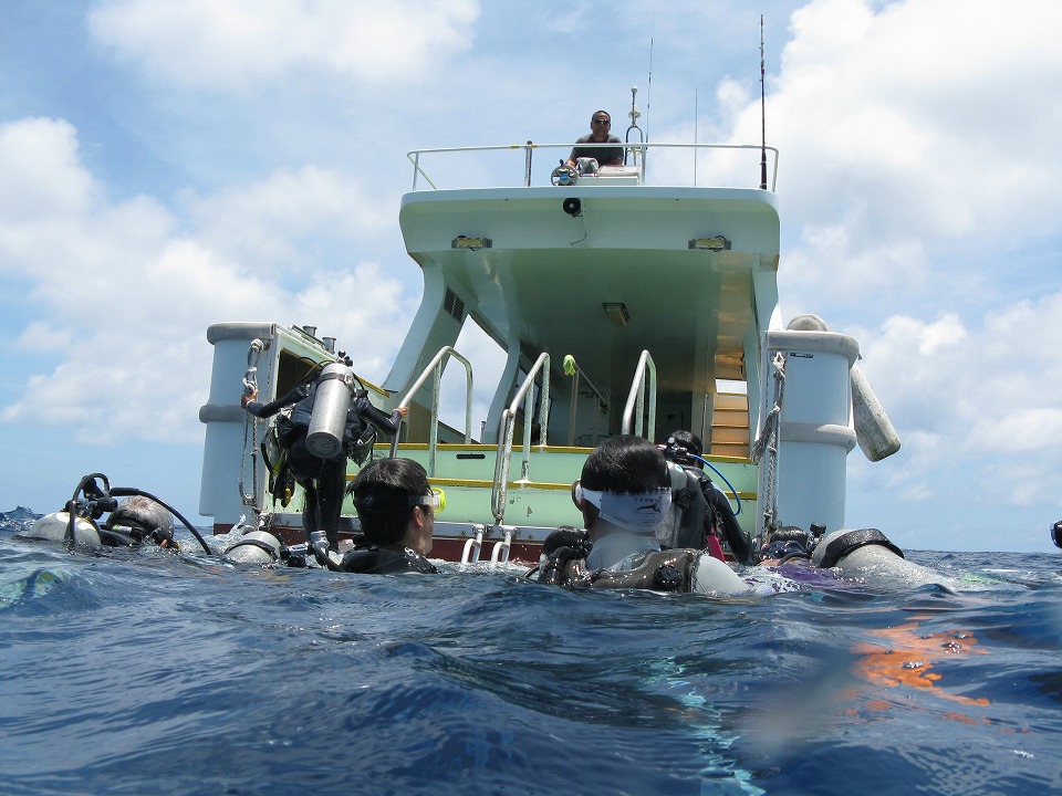 | ダイビングが終わったら、船にピックアップしてもらう。 |