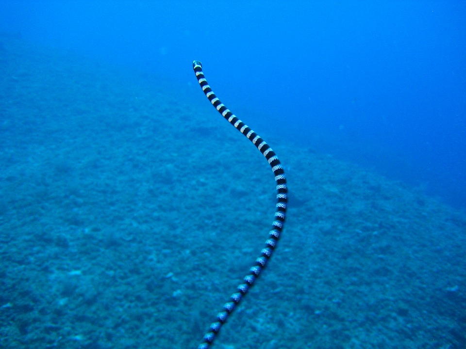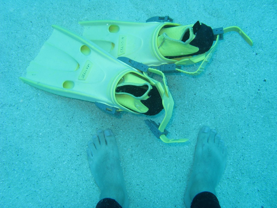 | 3本目も祖内の近くで潜る。 ウミヘビくんが息継ぎをしに海面に向かったと思われる。 このままヒモか何かで海底に括り付けたらどうなるかね〜(笑)。 |