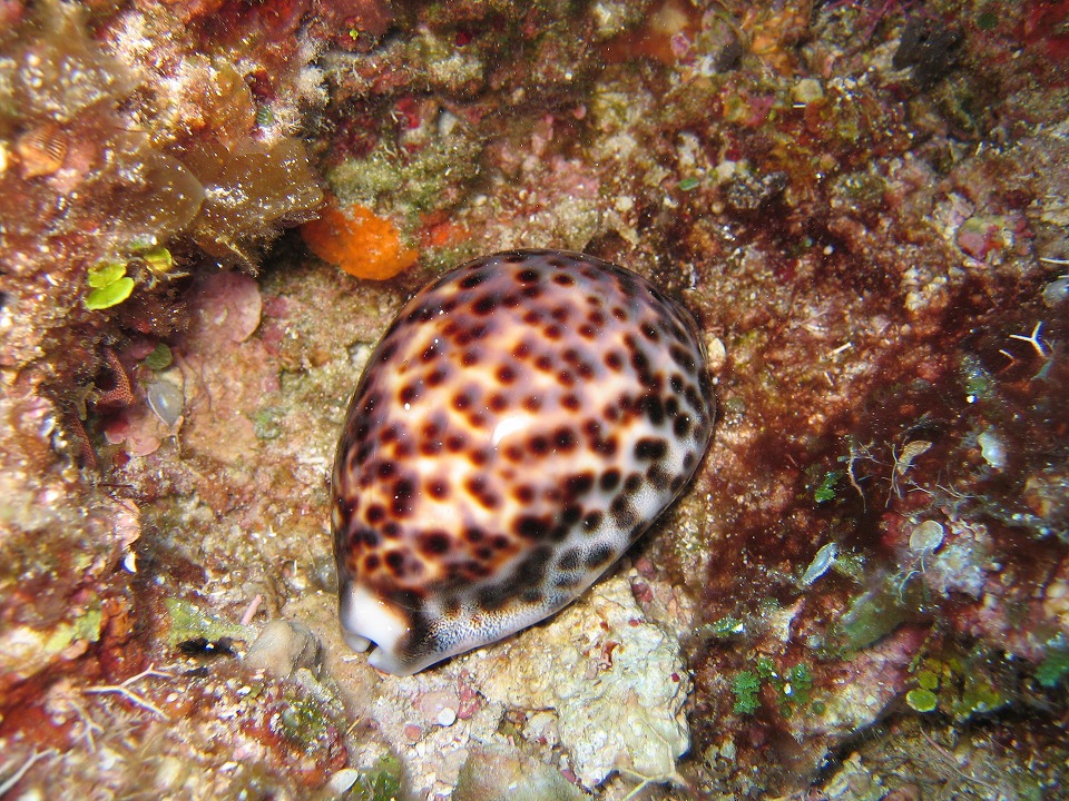 | スタッフが見つけて俺に渡してくれた ホシダカラ。 メチャクチャきれい。 大きさを測ったら、ちょうど9.0cm。 当然「お持ち帰りッ」と思ったが、 生貝だったので、泣く泣くリリースしてきた。 これが中身なしだったらどんなに嬉しかったことか! |