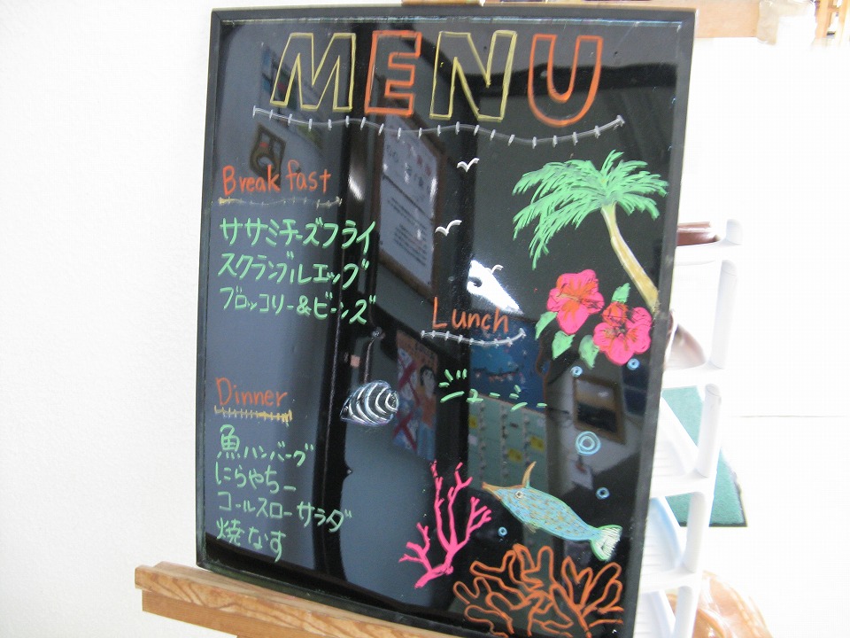 | 今日も朝からメシが旨い。 なので、いっつも喰い過ぎちゃうんだよね。 さ、今日も潜るゾ! |