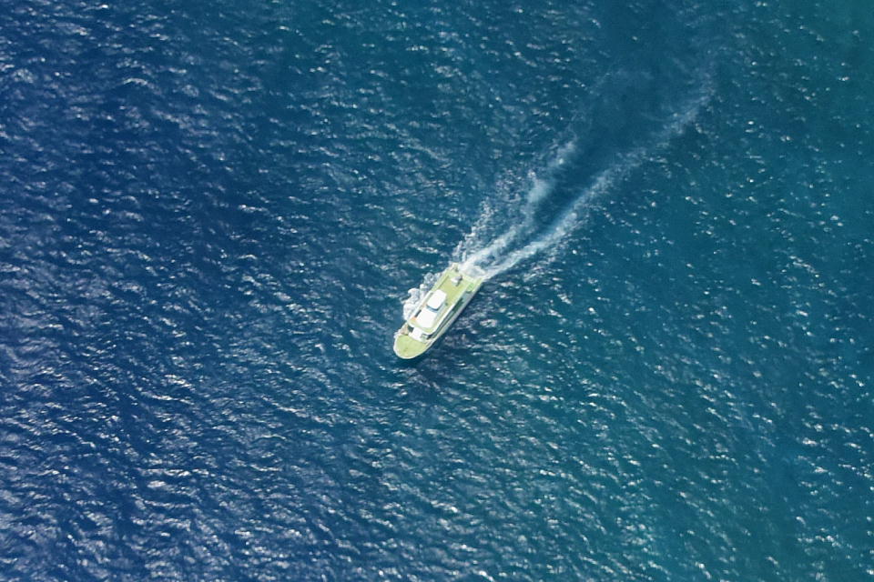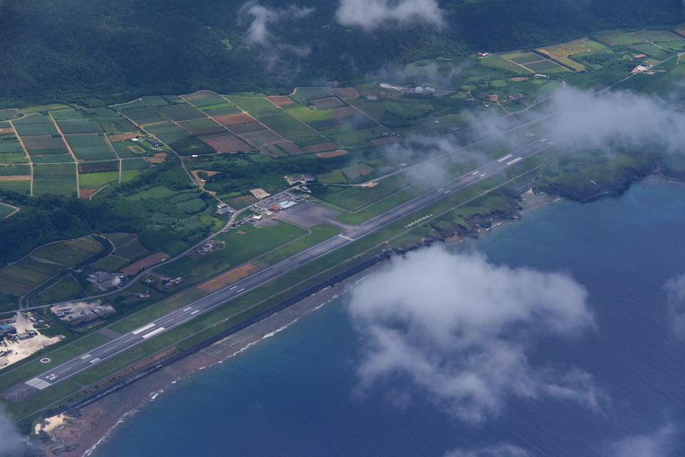 | 定刻より少し遅れて、RAC744便は与那国空港を西へ向けて離陸した。 離陸直後にダイビングを終えて久部良港に向かう「YDSVII」号の上を通った。 |