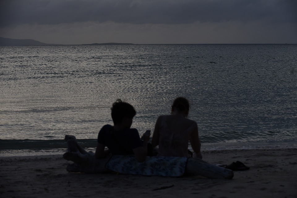 | 西桟橋に来たが、う〜ん、今日は夕日も夕焼けもだめだねぇ。 当然、星空観測会にもならない。 残念。 |