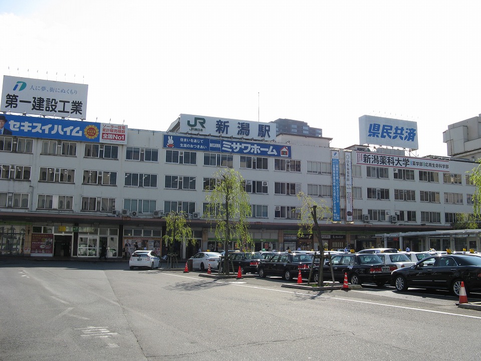 | メシを喰って、新潟駅前に来た、といっても歩いて1分もかからない距離だけど。 この駅舎は、在来線の高架化に伴い、早晩取り壊される。 |