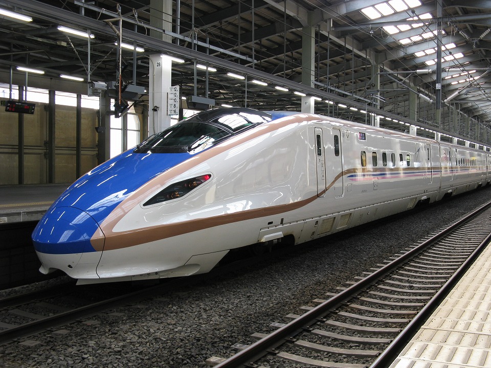 | おおっ、今のところ希少なE7系の上越新幹線仕様がいるではないか! ってことで、慌てて入場券を買って、新幹線ホームに撮影に来た。 ボディ横にピンク色のラインが加わっている。 先日の台風19号の水害でE(W)7系が10編成も水没して使えなくなっちゃったんで、 コイツを北陸新幹線に振り向ける計画もあるらしい。 ※この後のネットニュースで、 水没した編成は廃車にすることが決まったとのことだった。 |