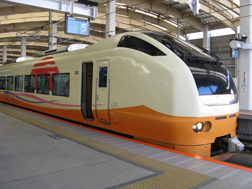 | 新幹線の撮影が終わり、在来線のホームに戻ったら、 「いなほ5号」が入線していた。 |