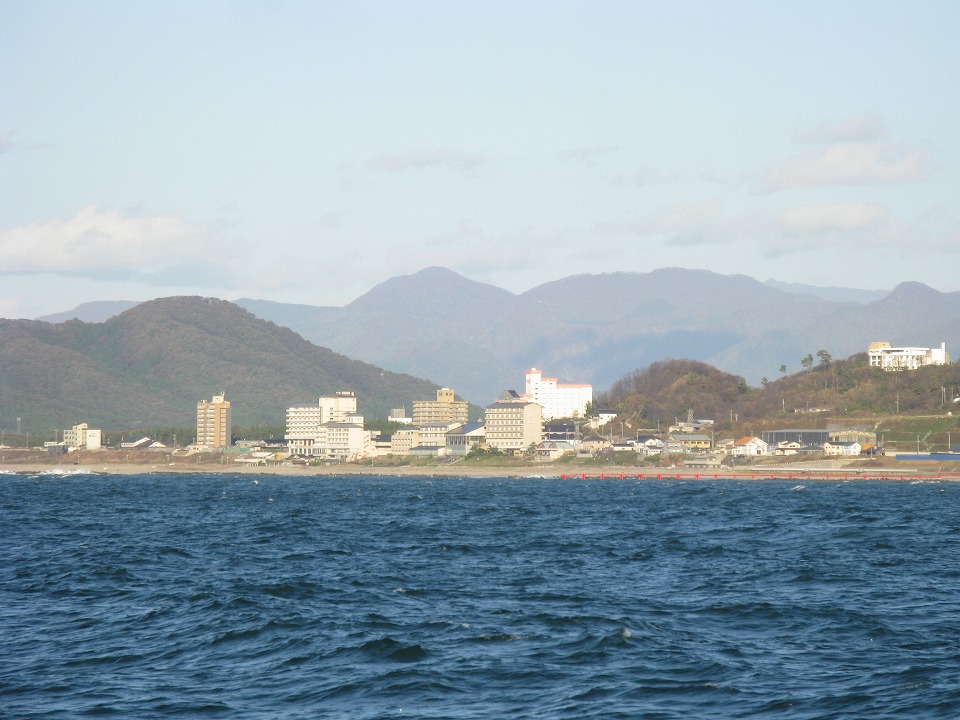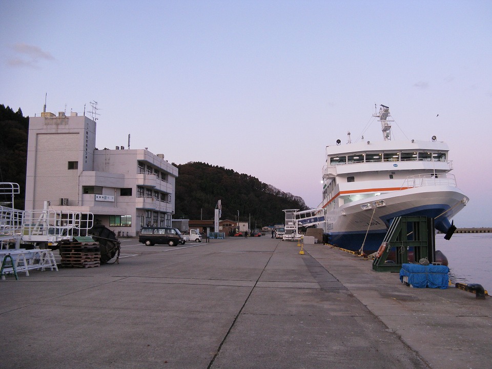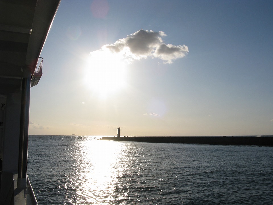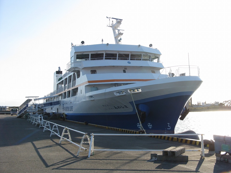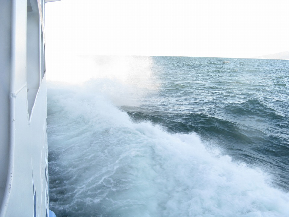 | 港外の日本海に出ると少しうねりがあった。 今朝は波浪注意報が出ていたっけ。 …と、ここまでで、船内のフリーWi-Fiを使って、 いったんUPします~。 |