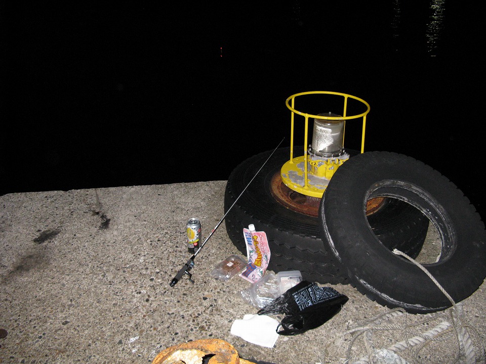 | 港の端っこの岸壁から釣り糸を垂らす。 さて、釣れるかな??? |