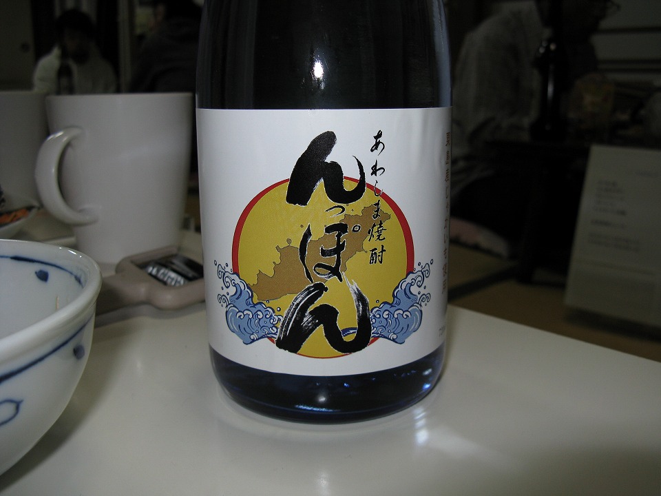 | 粟島の独自ブランドのジャガイモ焼酎も 頼んじまった…。 お湯割りでクイクイ進む! 4合瓶で2,300円ナリ。 |