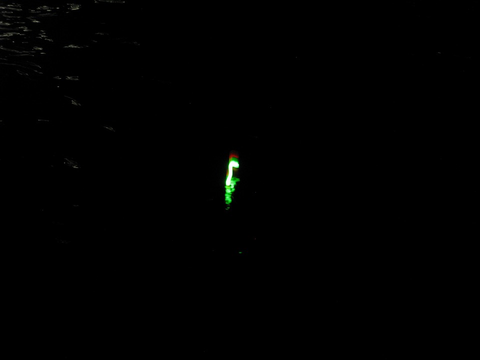 | 仕掛けを付けた電気浮きがプカプカする。 |