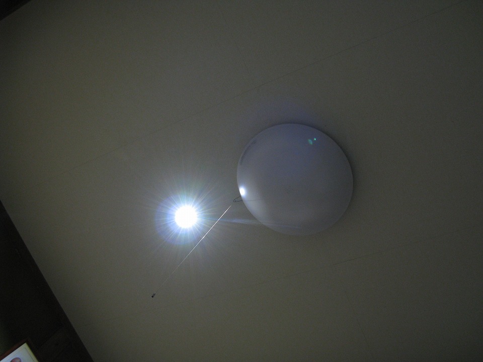 | そして、このページのUPに向けて準備していたら、 24時を過ぎて停電した。 この写真は、補助照明が点いているのを撮影したもの。 そういえば、夕方に防災行政無線で、 東北電力粟島火力発電所からの「お知らせ」として、 「24時から、発電所より南の地域で停電する」と伝えていた。 ここ「たてしま」は、火力発電所からほんの僅かに南に位置するのだが、 見事に対象だったようだ(笑)。 ってことで、ここまでをUPして寝るだ~。 |