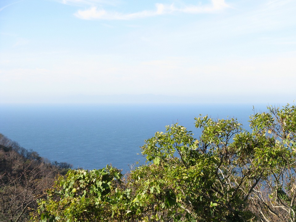 | 南西方向に佐渡島が見えた。 ロケーション自体はぐるっと360度が海なんだけど、 木々が視界を遮る方向があるため、 全方向の見晴らしがきくというものではない。 |