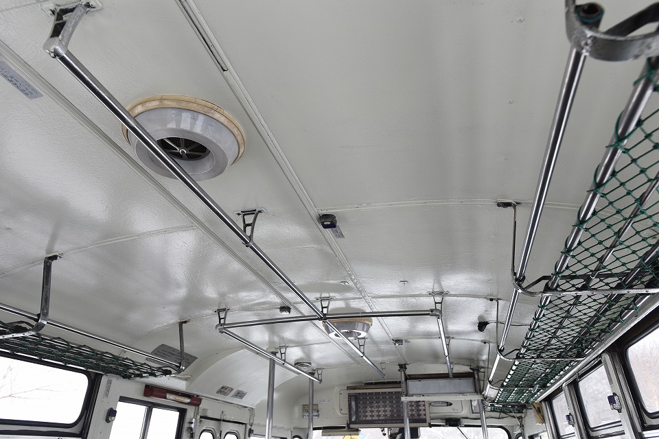 | ボンネットバスの天井。 写真では分かりづらいが、 白のペンキを何回も塗っている。 |