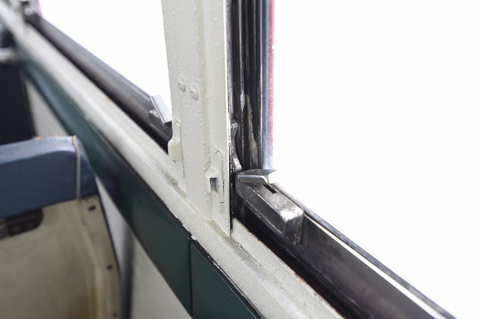 | 窓を上げるときのツマミ。 窓が開くバス自体今となっては珍しいと思うが、 この厳寒期には開けたくないゾ(笑)。 |