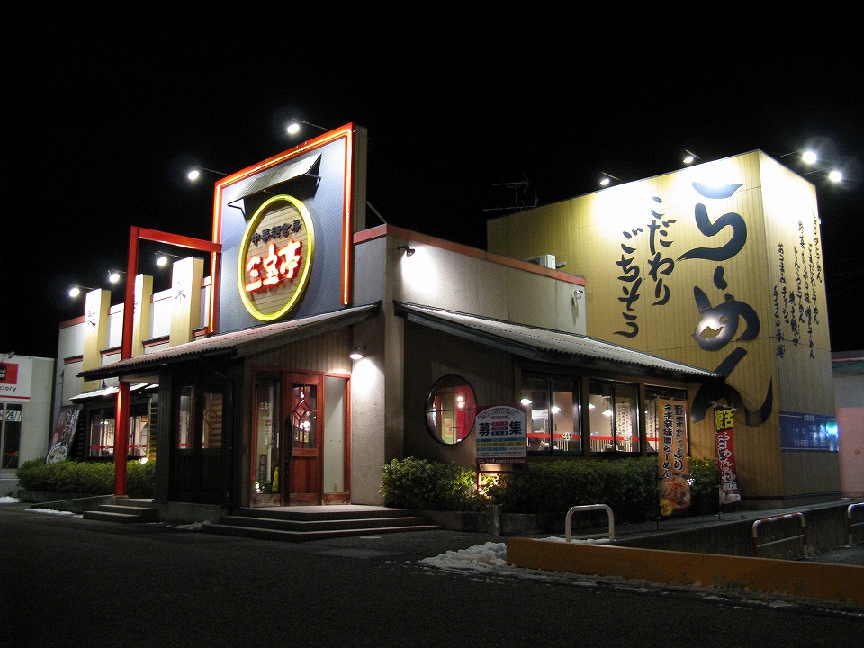 | 長野から約2時間半で、ETC専用の新潟東I.C.に着いた。 ハラ減ったゾ。 お気に入りの「三宝亭」でハラごしらえじゃ。 |