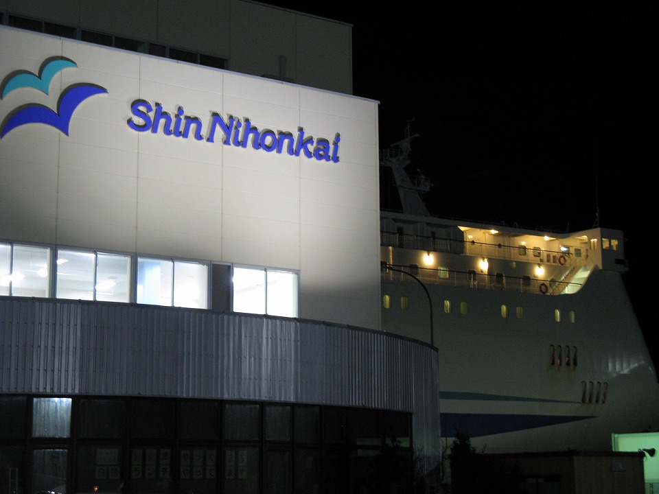 | メシを喰って、クルマで走ってちょっとのフェリーターミナルに着いた。 敦賀からの「フェリーらいらっく」はもう入港している。 乗船手続きをして、クルマの中で待機しながら、 このページを作り始める。 |