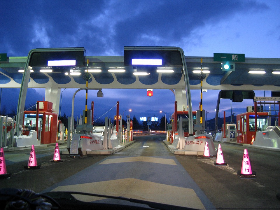 | 盛岡I.C.付近で給油し、コンビニでメシを買い込み、 東北道の西根I.C.に着いた。 |