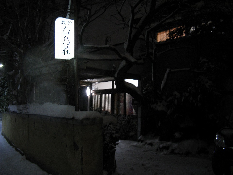 | 秋田市内をちょちょいと走り、 今日お世話になる「白鳥荘」に着いたゾい。 明日の秋田発のフェリーの時間が早めなので、 秋田まで来ておくのが安心なんだよね。 素泊まり3,500円ナリで、駐車場は無料。 これはなかなかありがたいゾ。 雪がワサワサと降っていて こりゃ明日は雪除けかな~? |