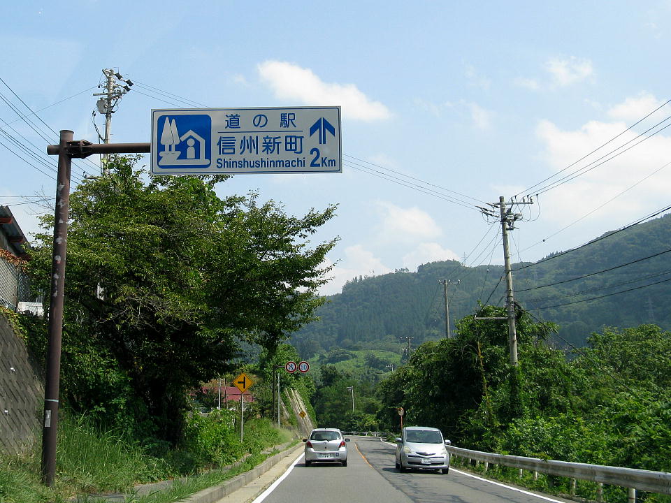 | 改めて走り出し、数分で道の駅「信州新町」が近付いてきた。 |