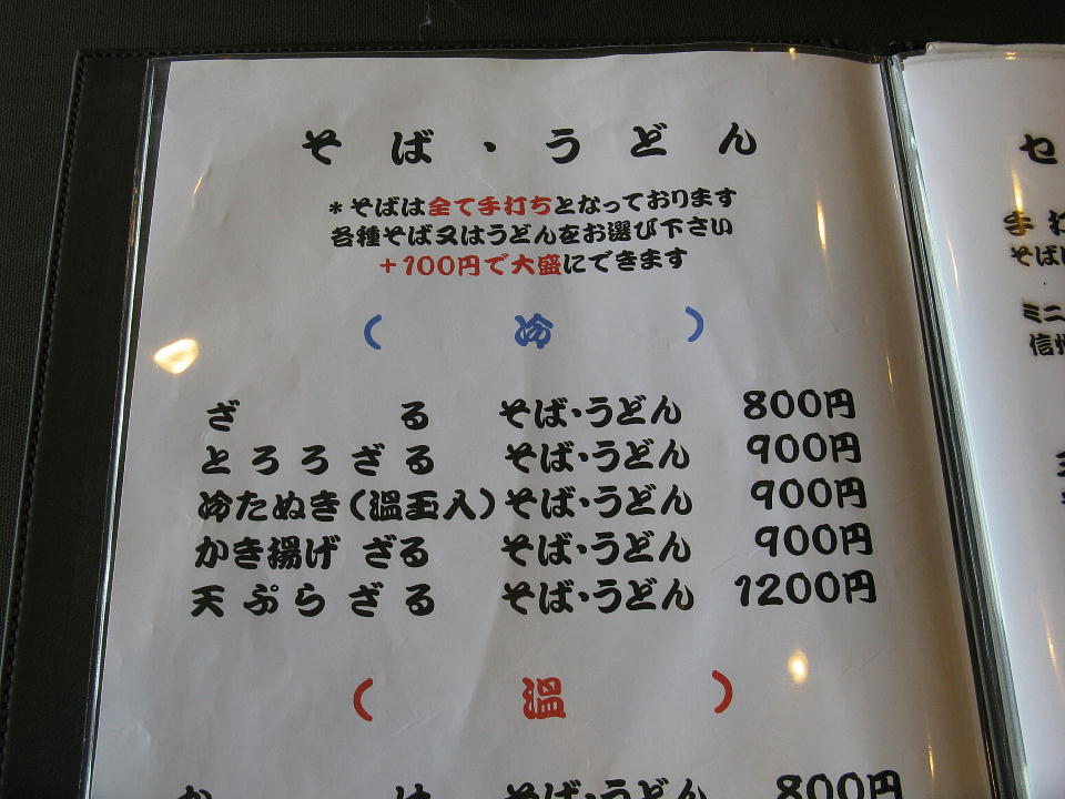 | ここは券売機はなく、メニューを見て注文する。 初めて来たが、なかなかいい値段だね。 もちろんざるそば一択。 |