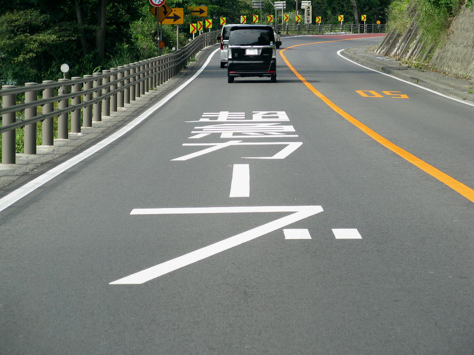 | 長野市街地の手前で、路面にこんなペイントがあった。 ちょっと前まではこんなのなかった気がする。 |