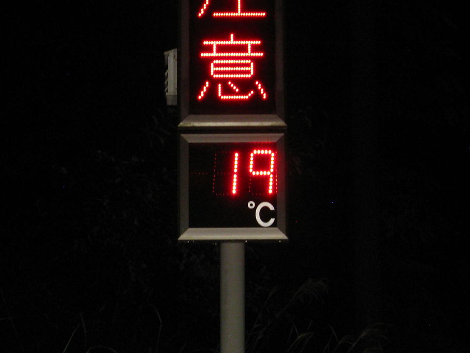 | おしまいにするはずだったんだけど、 約3時間ヒルネしたら元気になっちゃって、 「警察24時」的な番組をBGVにしつつ、少し画像整理をしてたら、 ハラが減ってきた。 これまでもこの「きむたび速報版」を見てくださっている方々なら どうする気か大体想像がつくかもしれないが、 22時を過ぎたところで、また蕎麦を手繰りに出かけた。 今度は長野市から北國(ほっこく)街道と国道18号で北に向かう。 「霧下そば」で名高い信濃町に入る直前の温度計は19℃だった。 涼しいよ。 この写真は手持ちで1秒だったんだけど、まーまーブレずに撮れました。 |