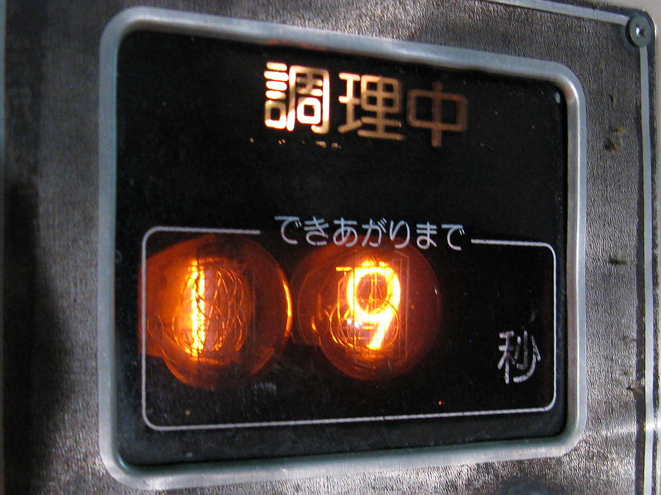 | ちゃんと25秒で、できあがり。 本来なら「チーン」と鳴って出てくるのだが、 残念ながらここの個体はこの音は鳴らない。 |