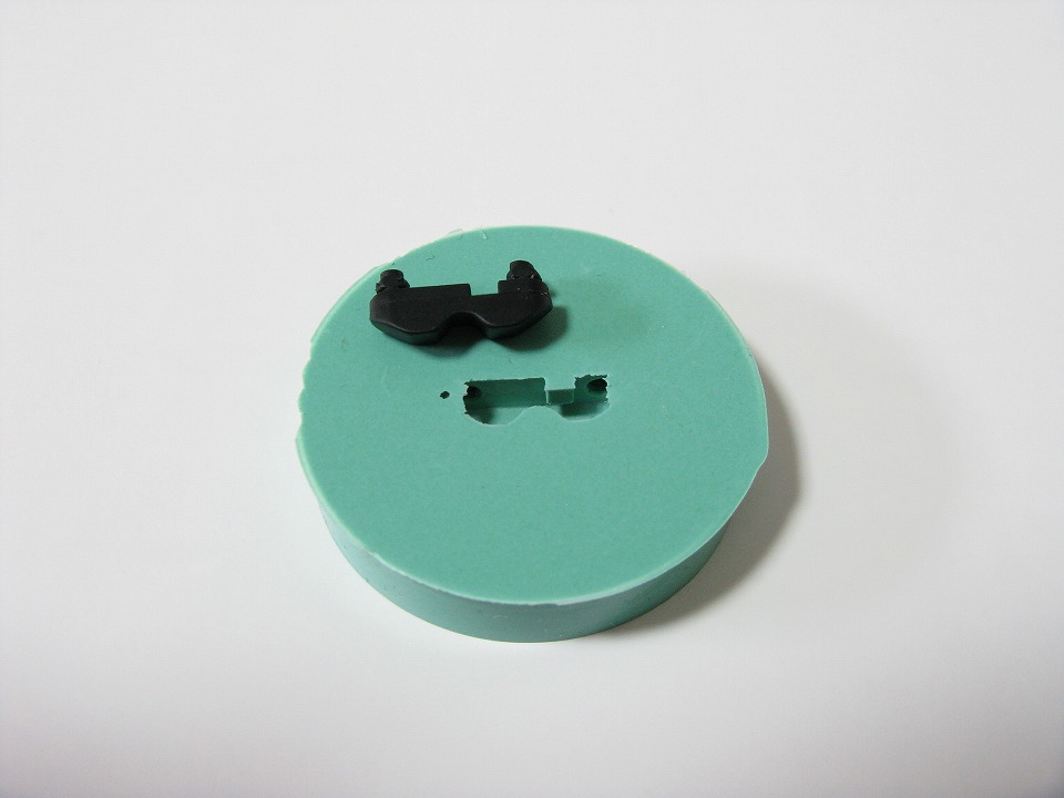 | 元の部品は簡単に取り出せる。 取り出したあとのこの中に、レジンを注ぐとコピーができる。 |
