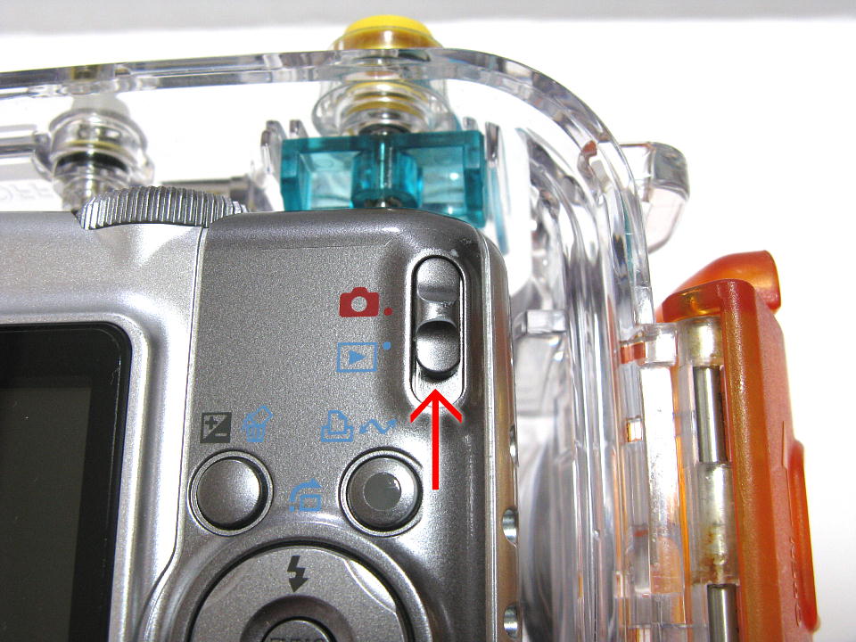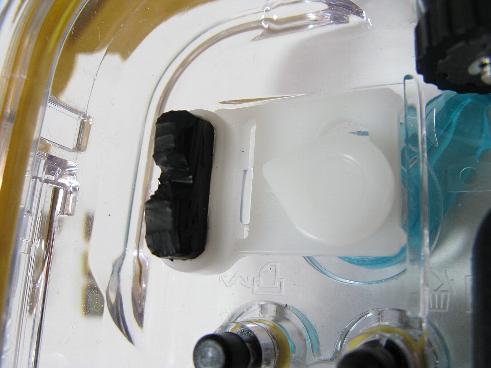 | 旧いハウジングを長く使っていると、問題が発生する。 コンデジの、「↑」の部分のスライド式の「モードスイッチ」を操作するために、 ハウジング側にゴム部品(以下「部品」)が取り付けられているのだが、 この部品が経年劣化でボロボロになってしまうのだ。 メーカーの修理に出すと、料金が高い(たかだか部品を取り付けるだけだ。)上に、 それほど長くない期間で「修理不能」の扱いになってしまう。 このモードスイッチの操作ができないと、 水中で撮影した画像がどうだったか、撮り直した方がいいのか、 などの判断ができなくなってしまい、ヒジョーに不便なのだ。 |