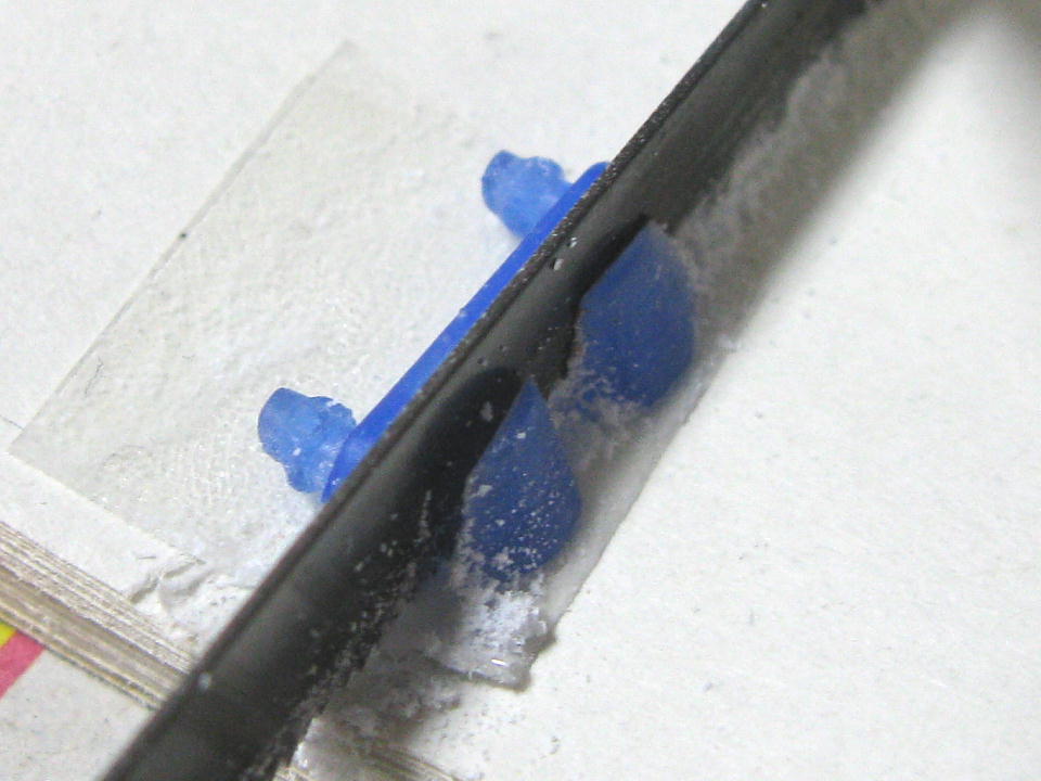 | ここにも気泡がある。 コツが段々と分かってきたのだが、成形樹脂の穴ボコに一気に全量を満たす必要はないのだ。 気泡が入らないように注意しながら、少しずつ硬化させることを繰り返しても境目は分からず、 きれいに仕上がるんだね。 |