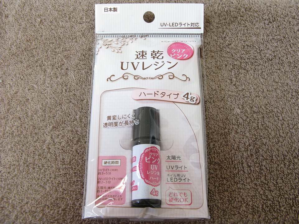 | 以前の作成で使用したレジンはちょっと特殊な2液タイプのもので、 今回の部品作りには、仕上がりの違いから使えない。 そこで、今回の部品作りに合うレジンをネットでもいろいろと見てみたんだけどよく分からず、 とりあえず試作用として100均の「Seria」でいろんな色のを買ってきた (結局は試作のつもりが本番になっちゃったけど。)。 ここでちょっと注意しないといけないのは、 レジンにはいくつかのシリーズあるのだが、 基本的に「どの光源でも硬化する」ものを選ぶこと。 そのリクツは書くと長くなるので、ネットでググってみてね。 |